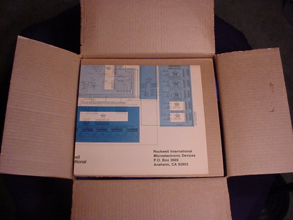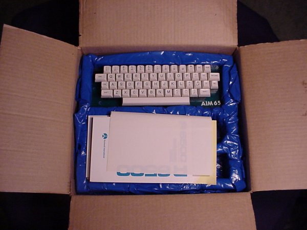 Donor: (Trying to find it.) Remember how early computers didn't come with a printer. How a about a single board computer with an on-board printer? Sounds outrageous, doesn't it! Well, the Rockwell AIM 65 is just such a beast. There's even a hunk of wire sticking out specifically to hold the roll of paper. The AIM 65 also comes with a single line LED display. You could hook the keyboard directly to the system board, or hook up a TTY terminal. And the full schematic came with as an added bonus. Also of note is the custom packaging for it.