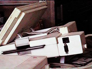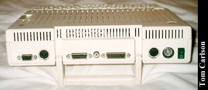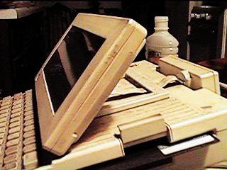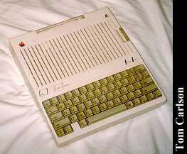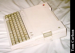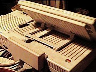 Previous CommentsOwner: K. Slettemoen & T. Carlson The Apple //c was Apple's portable version of the Apple II series. It's most obvious feature was its small size. It also has a membrane under the keyboard which protected the guts from spills of the liquid variety. The movie 2010 showed a guy using one at the beach. I don't think these had any sort of battery available, so he must have had a long cord. It used a separate monochrome monitor. It was fairly small and had a special stand that sort of wrapped around the back of the unit, so that the monitor hovered over the case, rather than behind it. Also available were a color monitor, and a special LCD monitor. (Anyone ever seen the LCD monitor?) The back has outputs for this monitor, as well as composite video. It could also produce an RF signal using an included adapter. It came standard with a 5¼" floppy drive. The best story I know about the Apple IIc involves famous cyberpunk author William Gibson. (He's one of my favorite authors, although I don't think his current work stands up to his earlier stuff.) What alot of people don't realize is that Gibson really knows very little about computers. (Which I think is one of the keys to his writing. He's not constrained by knowledge of present day technological limitations.) In fact, he wrote all his early works on a typewriter. At one point, he finally decided to buy a computer in order to do word processing. So he bought an Apple IIc. When he turned it on, the floppy drive started to make the usual grinding noise as it tried to read the boot disk that wasn't there. Gibson concluded that it must be broken and brought it back. (If I remember correctly, he related this little story in an interview with Timothy Leary. They basically interviewed each other. They spent most of the time talking about Thomas Pynchon.)