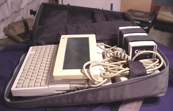 Well, you naysayers are wrong! Wrong wrong wrong! Here's a portable Apple IIc system, with a battery pack for use when away from a wall socket, and with the legendary LCD screen. That's right, the screen exists! Now, granted, the whole setup is heavy, but luckily comes with a custom shoulder bag to help you heft it around. The LCD screen isn't the sharpest, and its contrast leaves much to be desired. But it does work!
