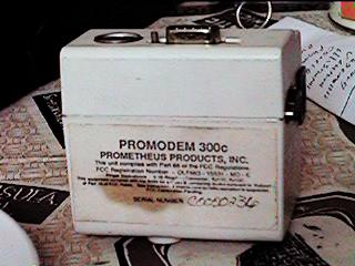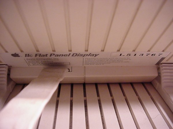 LCD MonitorHere are some pictures of and information about the LCD monitor, courtesy of Neal Pritchett. I have an old Apple IIc with the LCD display and just thought you might be interested in seeing it. The display itself is black and white only (heavens!!) and is adjustable. I also have a Prometheus Promodem, which is a small white box that goes into the back of the computer and is a 300 baud(!!) modem. This system was pretty much state of the art when I got it, and I spent many happy hours computing. The little beast was a constant companion on my sailboat, and even now I do some of my word processing on it. If only I could find a way to transfer my appleworks wp files onto my PC and into Word.
