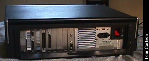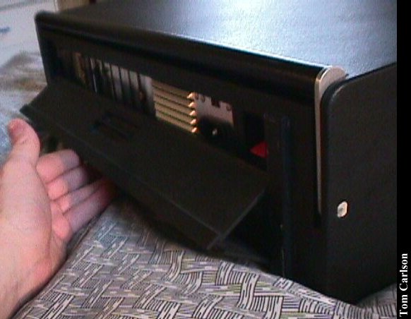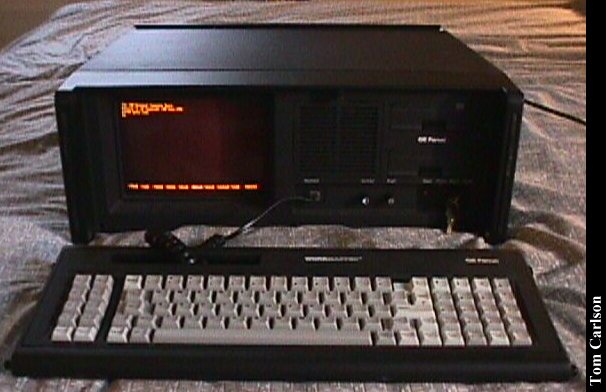 Army Ooo! A GE Workmaster System! Pretty heavy-duty name for an IBM XT clone. It's pretty nice, with a good keyboard, nice sharp amber monitor, 640k, and dual 3½ inch floppies. The floppies have hinged doors covering and protecting them. The keyboard can either be flipped down, yet still attached at the bottom, or can be removed entirely. The back looks like the back of a Big Blue machine, only with a GE nameplate and an extra connector for controlling industrial machines. It's protected by a neat hinged cover. Without a boot floppy, it boots into BASIC. All in all, a very nice little system, if a trifle heavy.