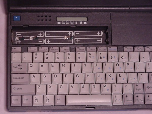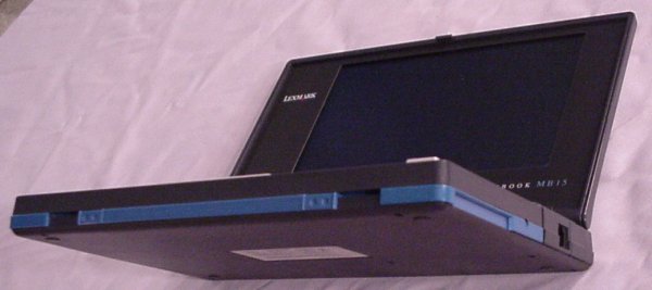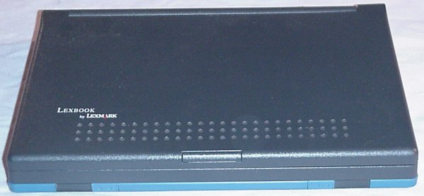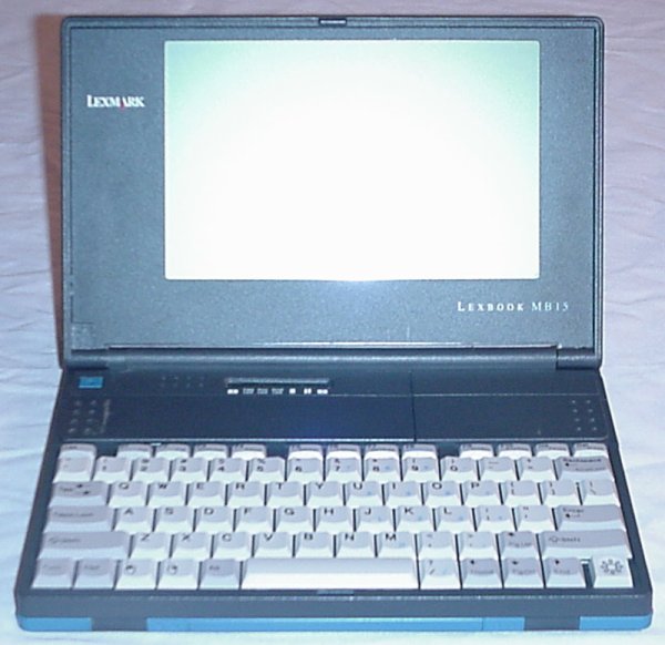 Owner: Tom Carlson I love this little laptop. I really do! I bought it on eBay. I wasn't planning on buying a little mini-laptop. I was just looking for SRAM cards for my Poqet PC. I found an auction for the MB-15 which included the SRAM card I needed. I won the auction, and just figured that the Lexbook was a bonus I would just set aside. How wrong I was. The Lexbook quickly became my favorite computer, and one that I frequently used. The screen, while monochrome, is sharp and big enough to show 80 columns by 25 rows with legible characters. (Something at which a Poqet PC fails.) The keyboard is slightly smaller than a full-size laptop keyboard. Which makes it perfect for me. (Although I'm a strapping six footer, I have surprisingly short fingers.) It runs on plain old AA batteries. (Albeit six of them.) And you can slow down the CPU clock for longer battery life. It supports digital sound, although only the old Disney SoundSource format. And it has a mouse key that moves in eight directions to control a mouse. It holds two SRAM cards at a time. And it has both serial and parallel ports, and a built-in 9600 baud modem. It's small. It's light. It's all solid state. It runs forever on a set of batteries. What more could you possibly want in a DOS-based laptop? Memory-wise, it packs a whopping meg of RAM, which it separates into a boot partition (C:) and a data partition (E:). It includes Stacker in ROM, so it compresses the E: drive. Since I mainly used it for writing, I was able to pack way more that 2 megs worth of text in the data partition. It also comes with DOS 5.0 in ROM. Sadly, it's on the blink. Something has gone screwy with the power supply. I put in six fresh batteries, and a couple days later, not only were the batteries completely dead, but a strip of the plastic casing was vaporized away to the bare metal. That's right. Each battery had a quarter inch strip of plastic missing from end to end. Freaky! If anyone actually has one of these, I'd really like a replacement! (As luck would have it, I recently found a replacement on eBay. It's an MB-10, but I couldn't find any functional difference. It also looks exactly the same. Unfortunately, it started heating up its batteries as well. Alas, I guess it's just not meant to be!)