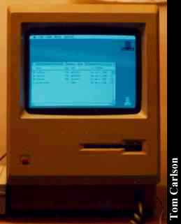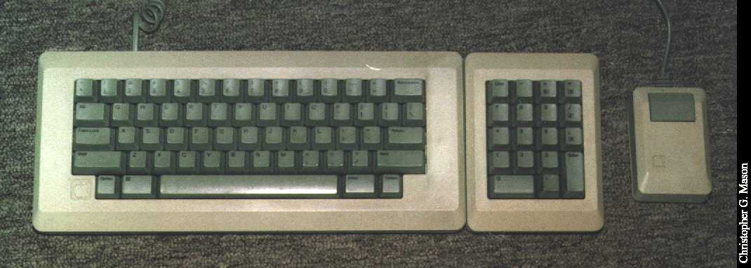 Donor: Mary Jo "Kriss" Winchester After hundreds of complaints (4) from Mac users that the Macintosh SE wasn't obsolete enough, we finally have an older Mac in the Museum. In addition, I finally have one at home. (It was donated by my former co-worker Mary Jo "Kriss" Winchester, who insisted that I mention her by name as part of the deal!) This particular model is the enhanced model, with 800k double-sided drives, instead of the original 400k single sided ones. The external drive in the picture actually belongs to the Macintosh SE. It also has a signed case. The frightening thing about this system is how good the Mac OS is, so early in the game. The entire OS fits in around 250k of disk space, and the whole system boots from power-up in less than 13 seconds. The external drive, eliminates disk swapping, making it a pretty usable little system. I just have one question: Where are the cursor keys? Do I really have to use the mouse just to move up a line or over a few characters? At least there's an optional number pad. Fellow Mac 512K owner Bob Bacus adds: