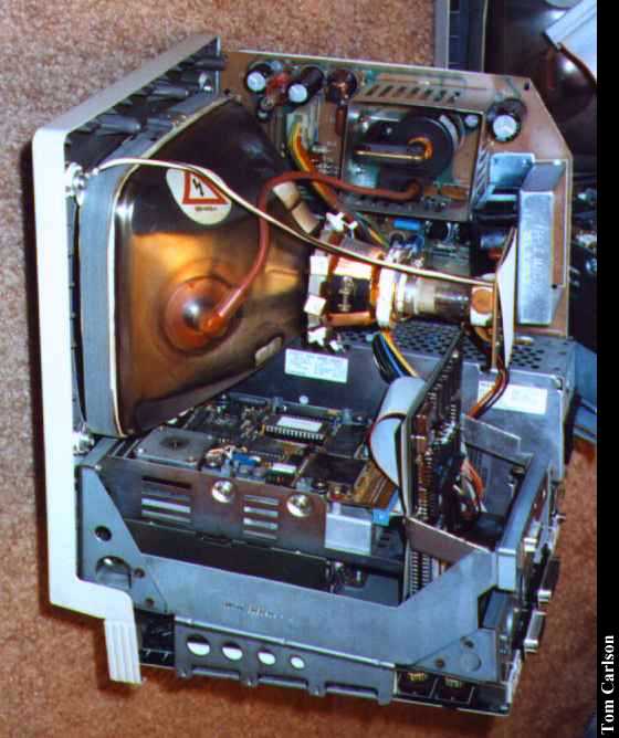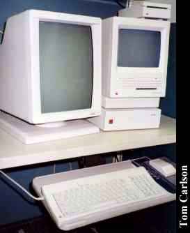 Owner: NCSC Location: Williamsburg, VA "Old, under-powered, and way over-priced, but still very cool." That's how I used to describe this SE. But that was before I opened it up. It's actually loaded with 4 megs of RAM, and a 68020 accelerator board that also drives the full page Radius monitor sitting next to it. This monitor works in combination with the internal monitor, giving you a large, rotated-"L" shaped screen. As you move the cursor off the left side of the internal screen, it appears on the full-page, and vice-versa. Pretty cool! It's especially fun when the bouncing ball screen saver kicks in. The ball smoothly flies off one screen and onto the other. The SE is sitting atop an 80 meg external hard drive. And, of course, its operating system ran rings around the old DOS/Windows combination. (Some say it still does. I'm not taking sides.) Unfortunately, this particular had SE died a year or so back. It would just sit there with a blank screen, making a sound like a helicopter. People told me it was a bad power/video board. But I didn't have a spare, nor the knowledge to replace one. However, I was recently rooting around in the a basement and I found its twin. (Not really a twin. This one has only 2½ megs of RAM and just a stock 68000.) Now, if these were PCs, the next steps would be obvious: