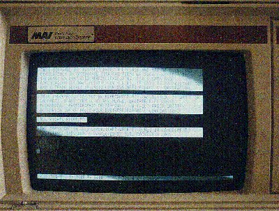 The system comes up at power on with no system check, no boring memory count. Just a 'beep', some weird patterns on the screen, then the IPL from disk 0 (upper) begins. The unit 'knows' different operating modes: 'BB/4' - running on Basic programms, 'Line' - in Terminal-emulation mode, 'Local' - which appears to be non-functional and 'AUX' which is another Terminal mode again.